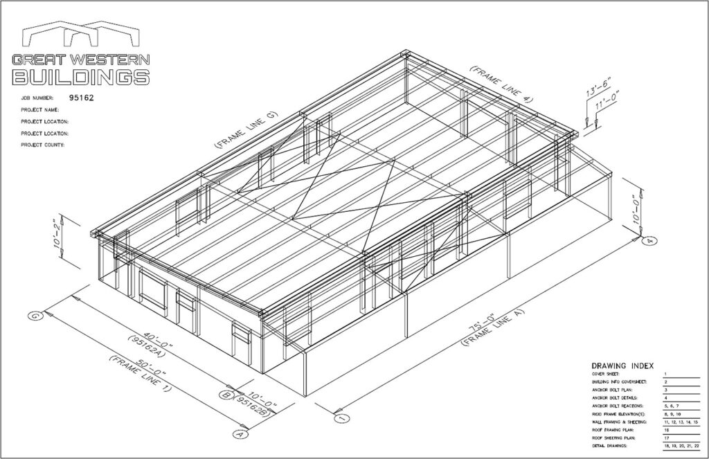 Single Slope Steel Building – 40′ x 75′ x 10’/13′ 6″ GWB#95162 Price: $32,000 (does not include sales tax or delivery) DIMENSIONS Width/Span 40’ – 0” Length 75’ – 0” Height 10′ Low Side/ 13’6″ High Side, Lean-To high side is 11′ Roof Pitch 1:12 Download Drawings LOADS Code Year IBC-24 (Can be Modified) Risk […]
